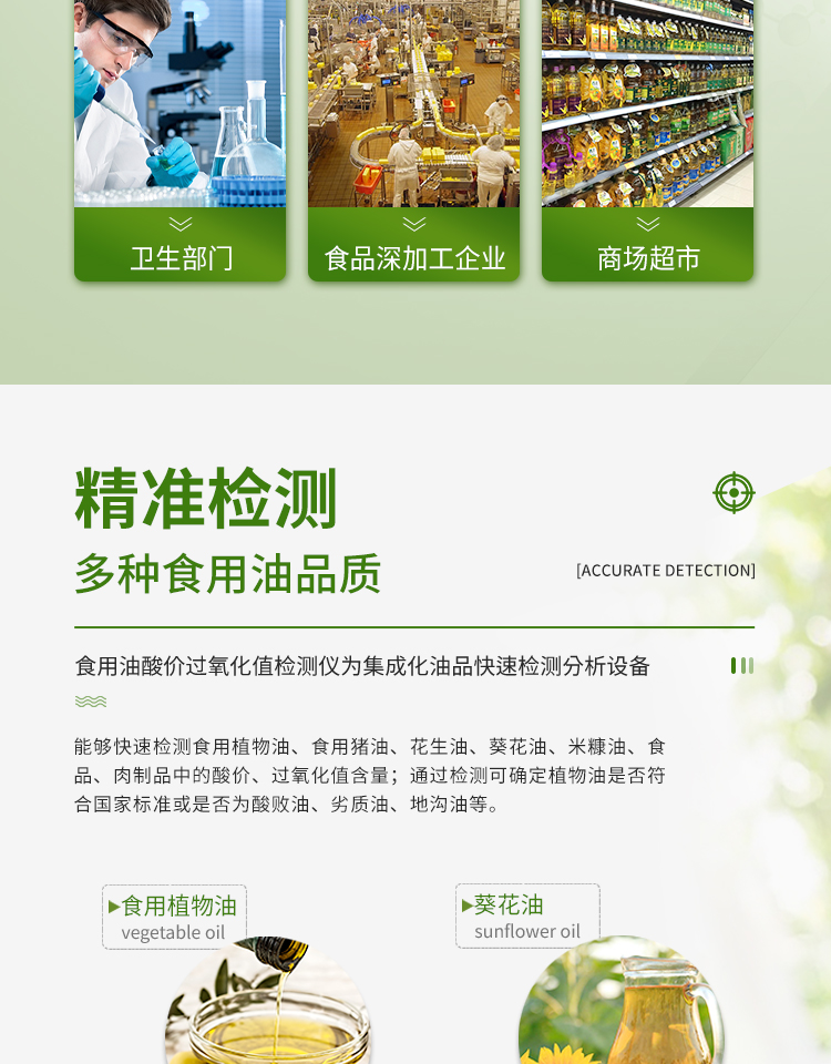 广泛应用于质量监督检验、工商管理、油炸食品生产基地、食药监局、卫生部门、肉制品食品深加工企业、商场超市、各大食品安全监测系统等单位使用。