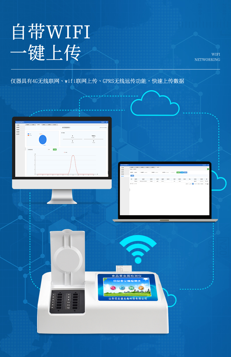 3、仪器具有4G无线联网、wifi联网上传、GPRS无线远传功能,快速上传数据。