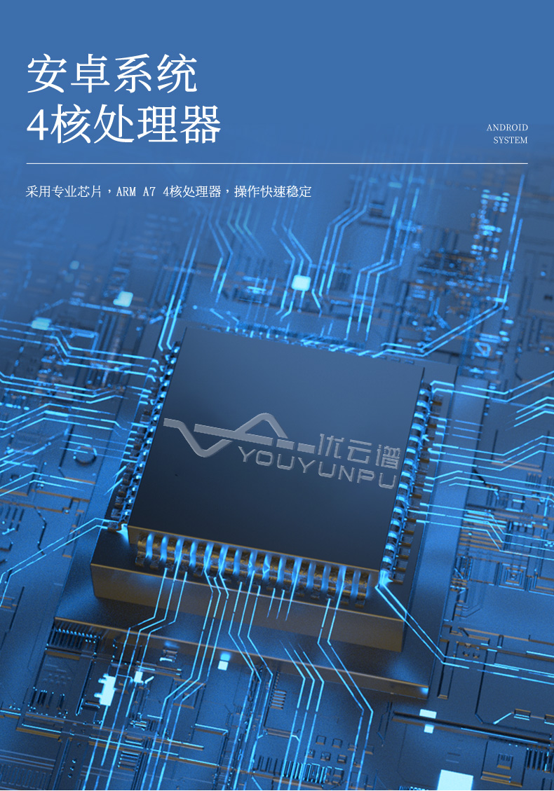 ◆主控芯片采用ARM A7 4核处理器,主频1.88Ghz,运转速度更快速,稳定性更强。